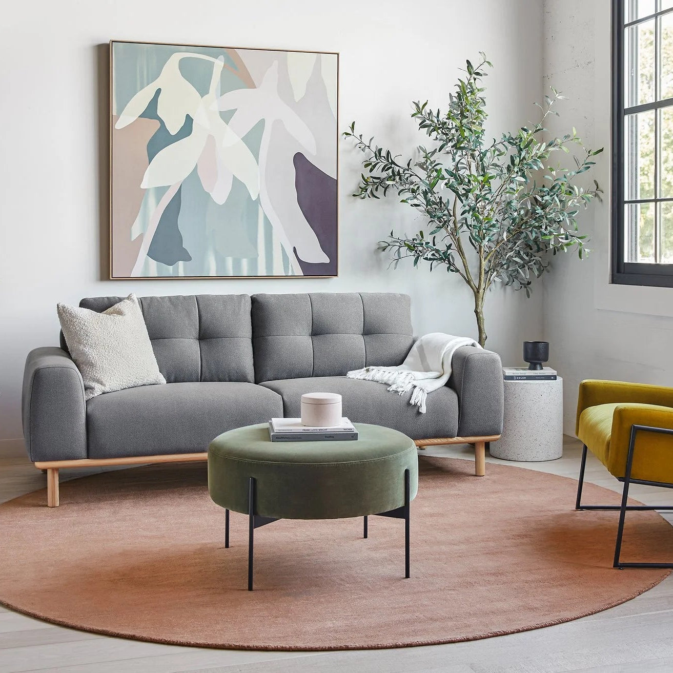 Left: Arethusa. Top right: Circe. Bottom right: Black Vessel I — artworks placed within interiors styled by Article in collaboration with the Vancouver Art Rental & Sales Program.